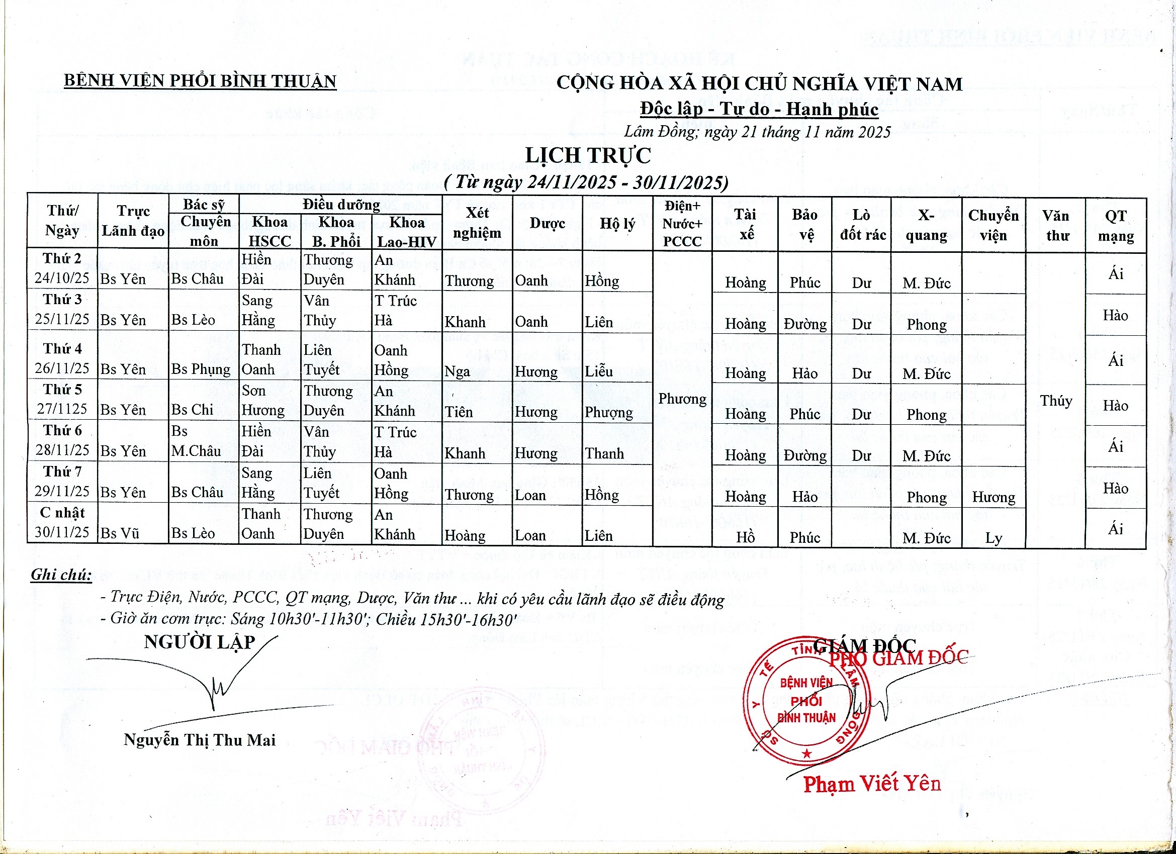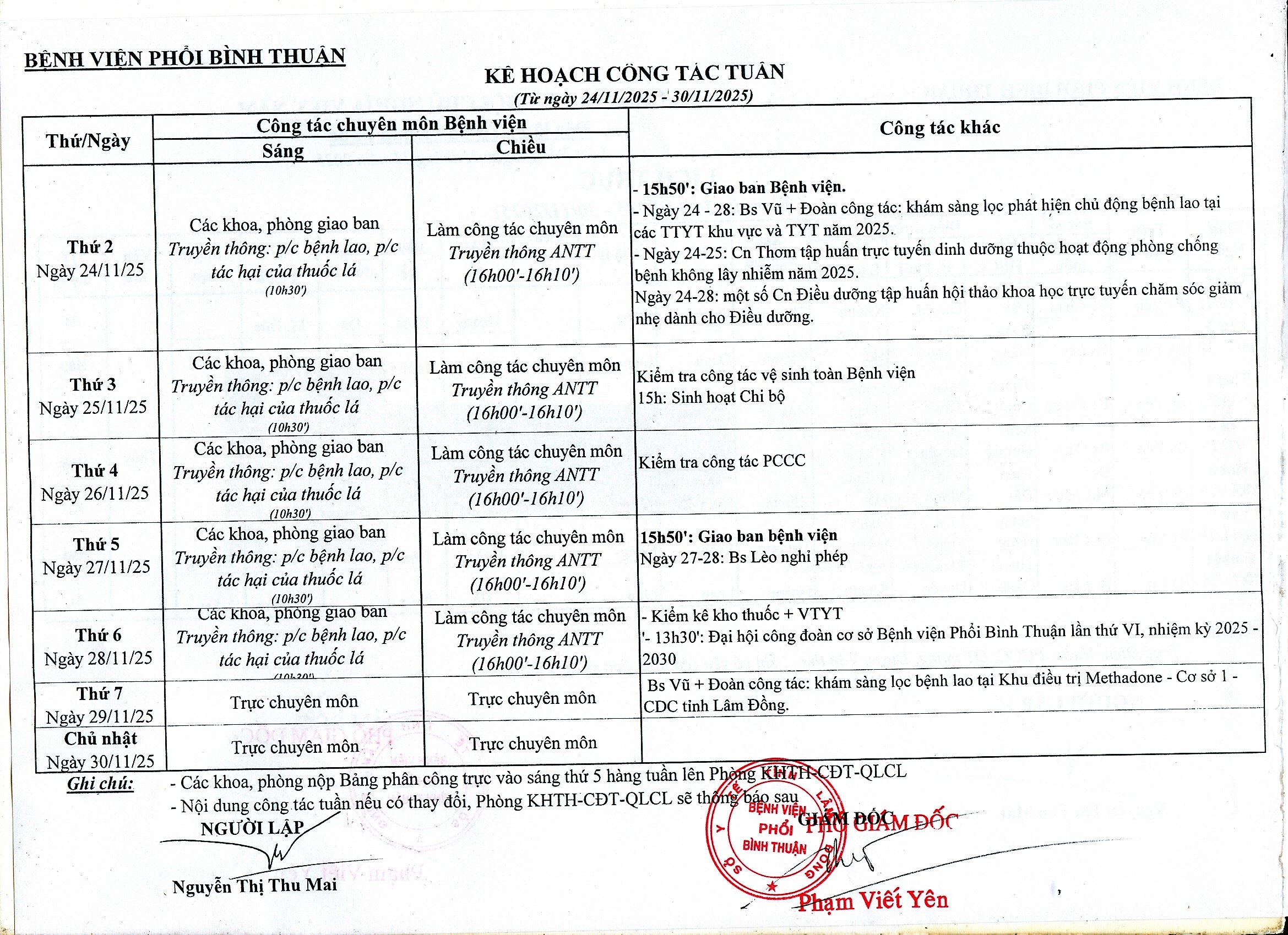 Lịch công tác (24/11/2025 - 30/11/2025)