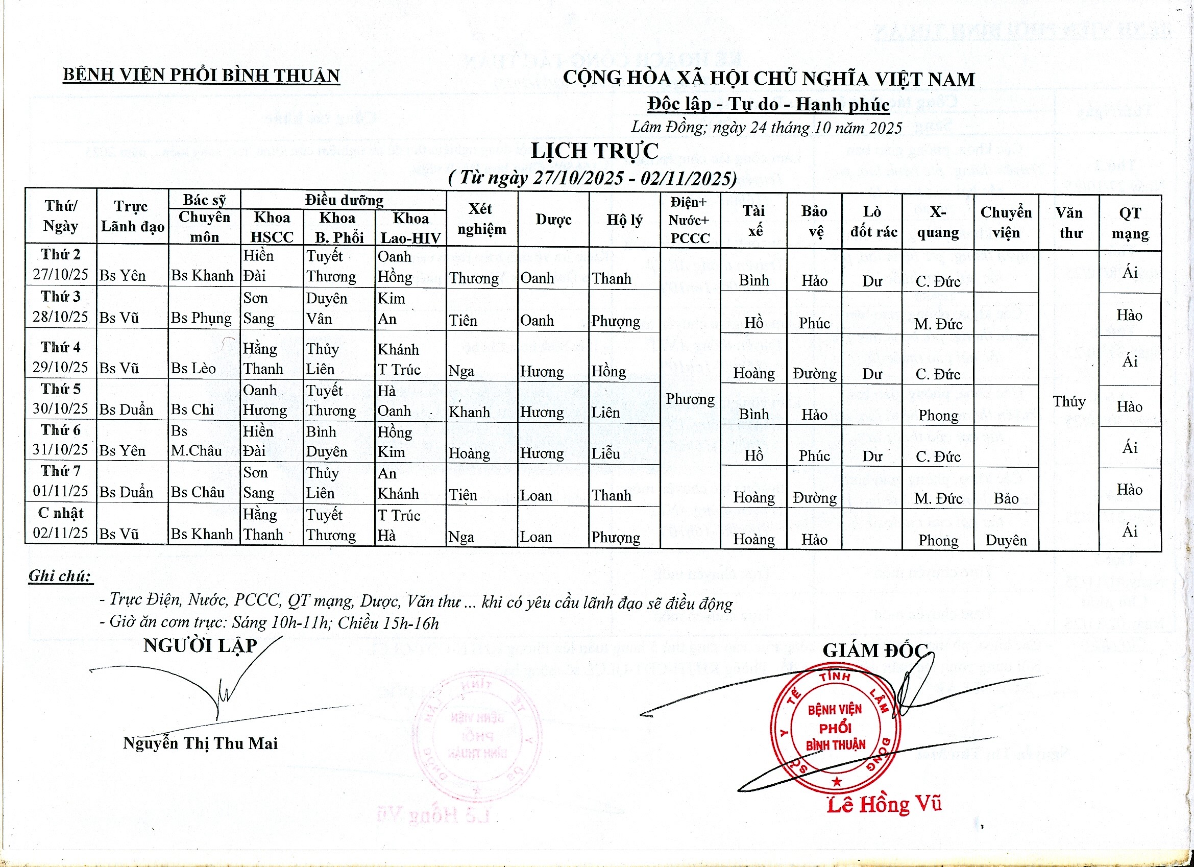 Lịch công tác (27/10/2025 - 02/11/2025)