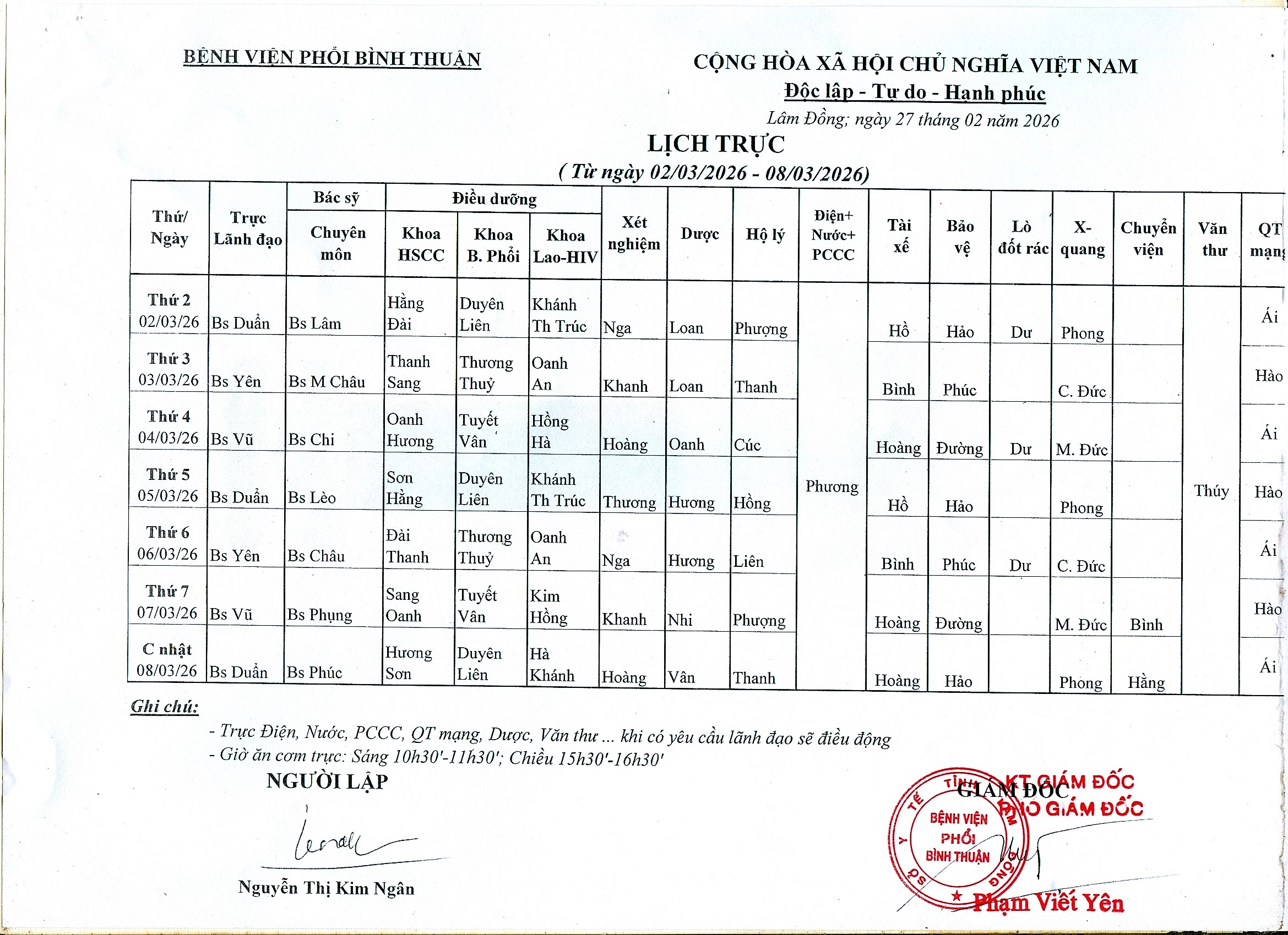 Kế hoạch công tác (02/03/2026 - 08/03/2026)