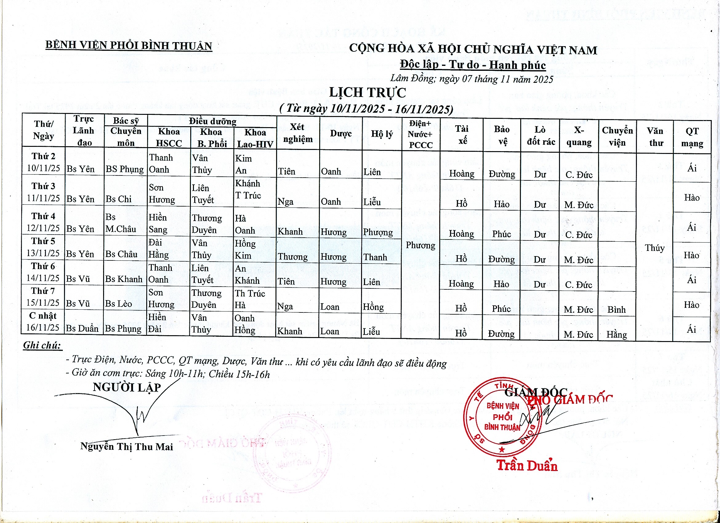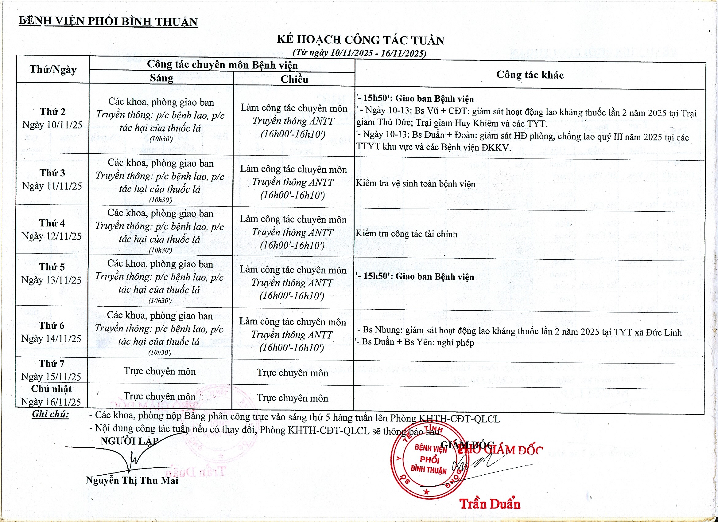 Kế hoạch công tác (10/11/2025 - 16/11/2025) 117246 Đã xem 30/08/2018 Trang chủ Thông báo Ngày đăng: 30/08/2018 File đính kèm: Thông báo khác Phân lịch trực ứng phó với bão FENGSHEN tại Bệnh viện Phồi Bình Thuận ( 20/10/2025 ) Thư mời chào giá: tư vấn lập E-HSMT và đánh giá E-HSDT, thẩm định E-HSMT và kết quả LCNT gói thầu HC-SP phục vụ công tác xét nghiệm năm 2025-2026 ( 10/10/2025 ) Phân lịch trực ứng phó bão số 9 Ragasa tại Bệnh viện Phồi Bình Thuận ( 24/09/2025 ) Mời chào giá HC-SP-VTTH phục vụ công tác xét nghiệm năm 2025-2026 ( 22/09/2025 ) Mời chào giá phim X-Quang năm 2025 ( 12/08/2025 ) Thư mời chào giá thuốc phục vụ công tác khám chữa bệnh ( 15/07/2025 ) Thư mời chào giá: mua sắm vật tư, hóa chất, sinh phẩm ( 17/06/2025 ) Bản công bố: Cơ sở khám, chữa bệnh đáp ứng yêu cầu là cơ sở thực hành trong đào tạo ngành sức khỏe (bổ sung) ( 15/04/2025 ) Mời chào giá vật tư, hóa chất tháng 4/2025 ( 14/04/2025 ) Thông báo: Thay đổi tên kho bạc giao dịch ( 19/03/2025 )