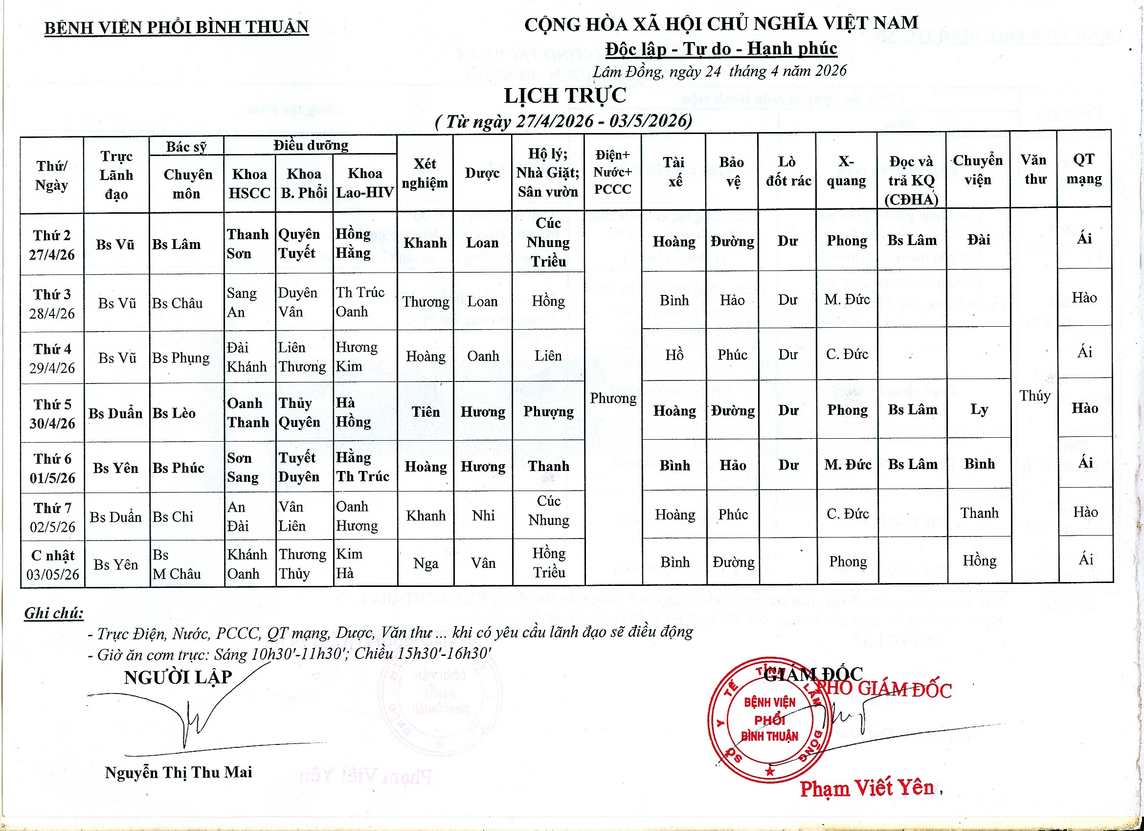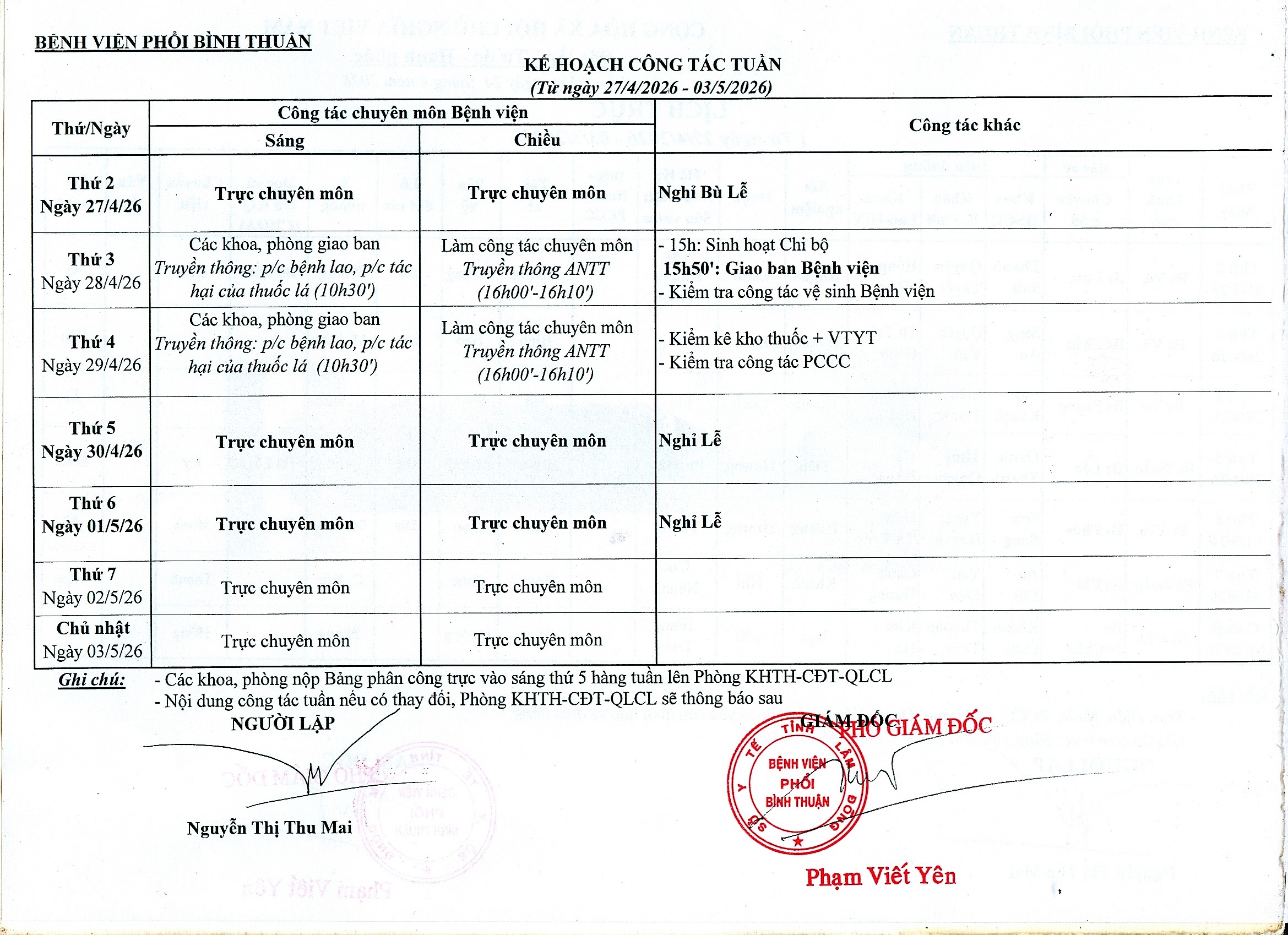 Kế hoạch công tác (27/04/2026 - 03/05/2026)