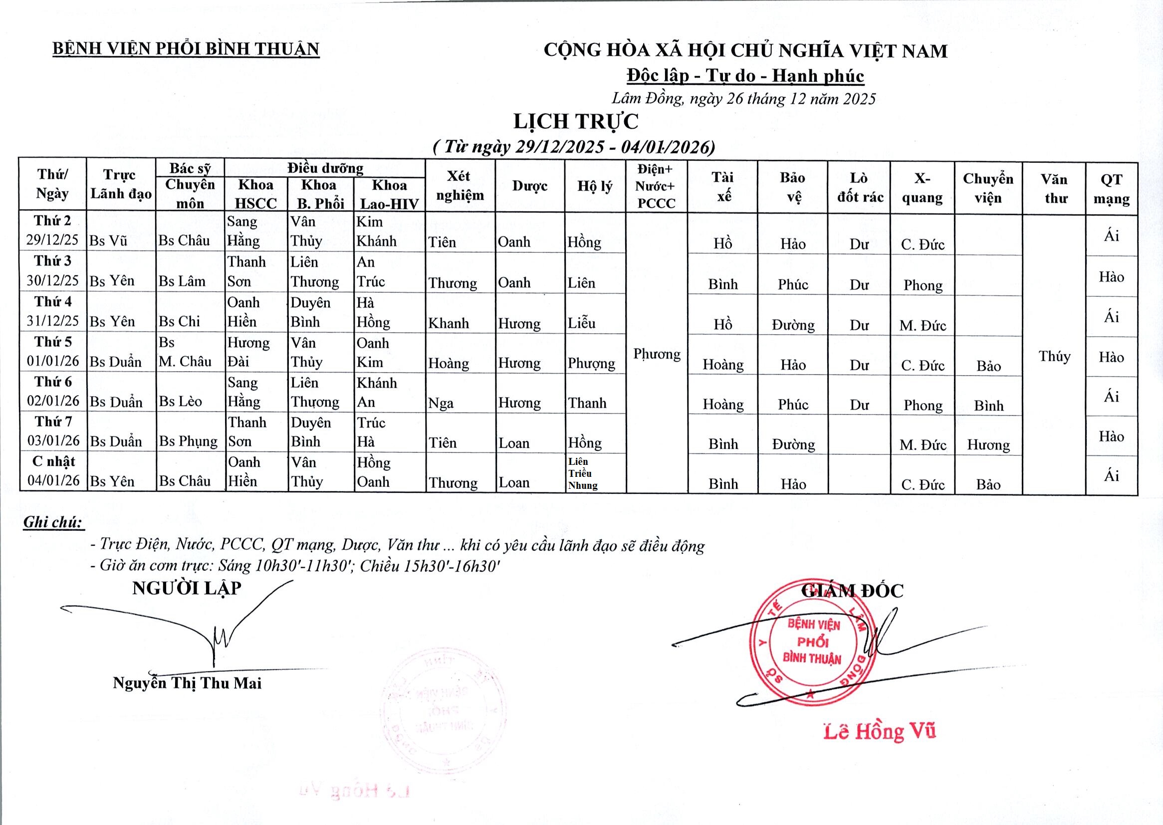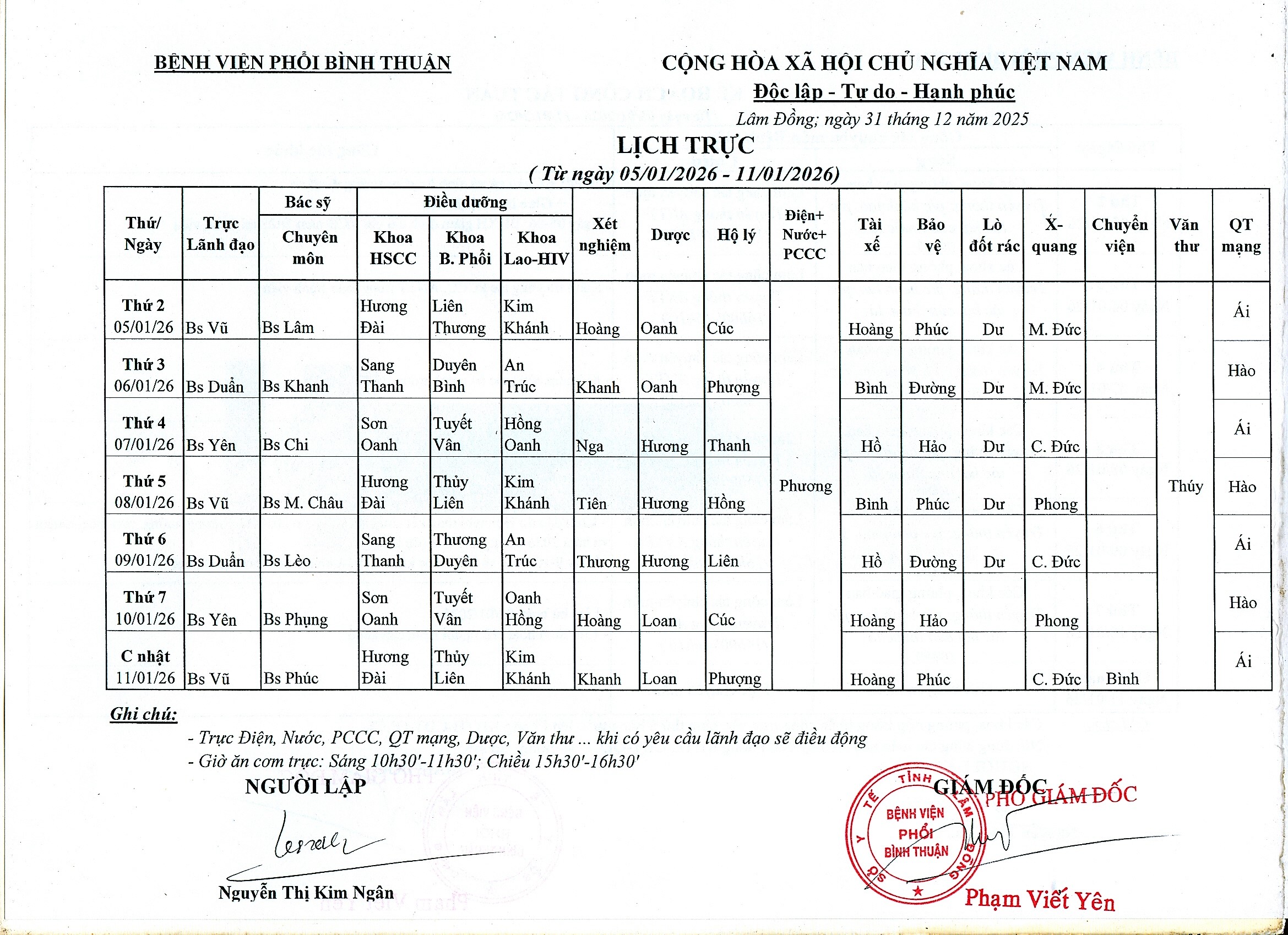 Kế hoạch công tác (29/12/2025 - 11/01/2026)